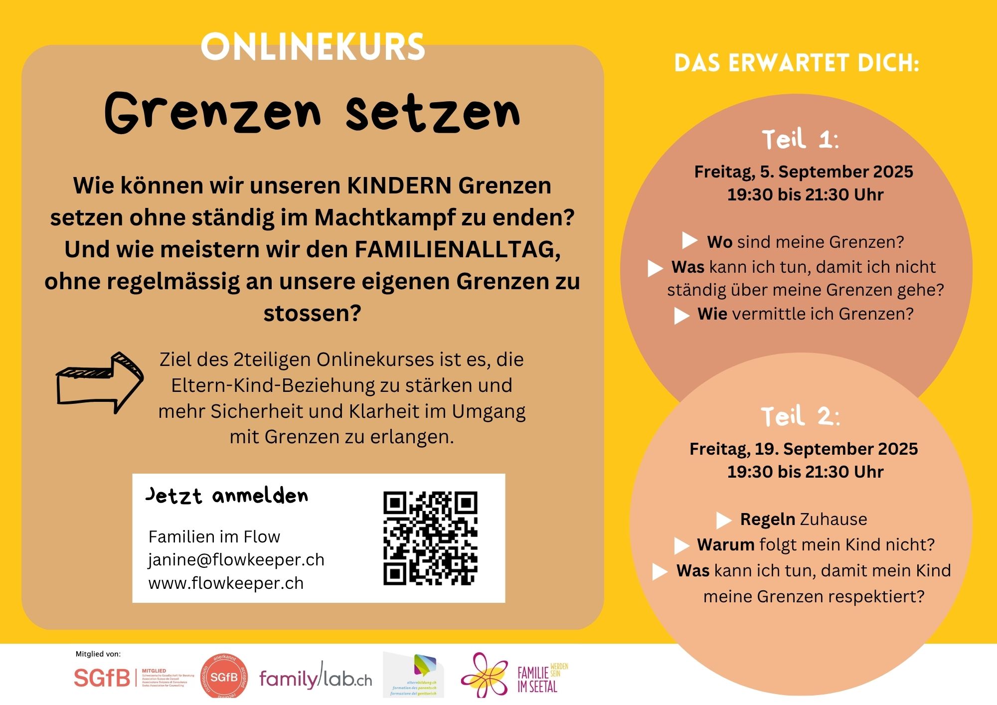 Ziel des 2teiligen Onlinekurses ist es, die Eltern-Kind-Beziehung zu stärken und mehr Sicherheit und Klarheit im Umgang mit Grenzen zu erlangen. Grundlage des Kurses sind die Werte und Prinzipien des dänischen Familientherapeuten Jesper Juul.